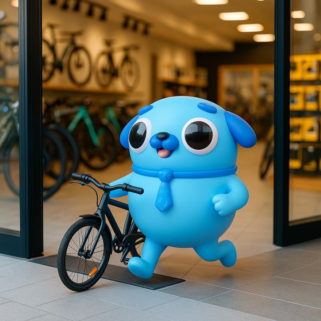 Hoi, ik ben Bestie — en vandaag kwispel ik vrolijk tussen de fietsen bij Egberts Tweewielers.