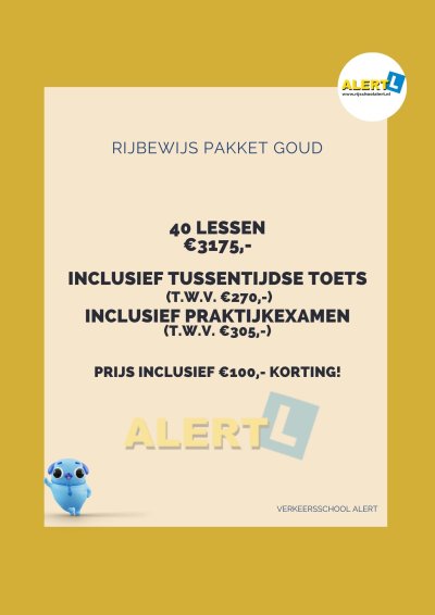 Rijbewijs Pakket Goud – 40 Rijlessen incl. TTT & Praktijkexamen | Verkeersschool ALERT